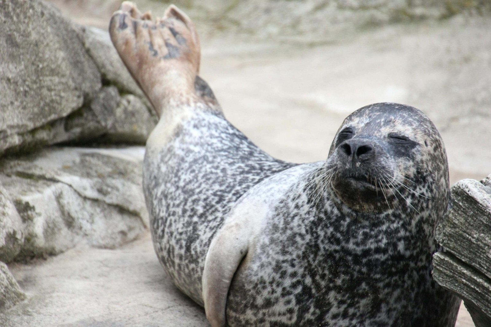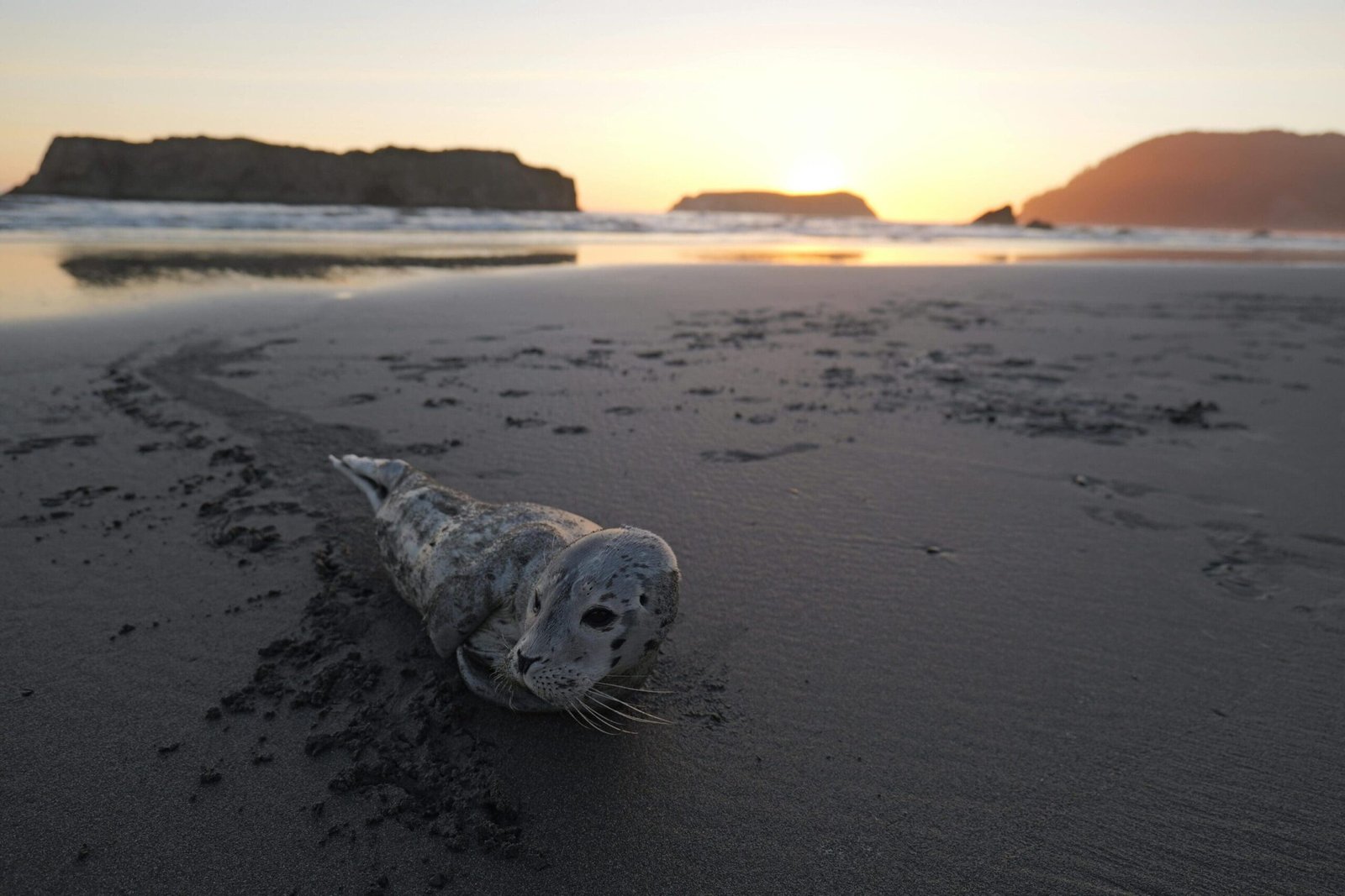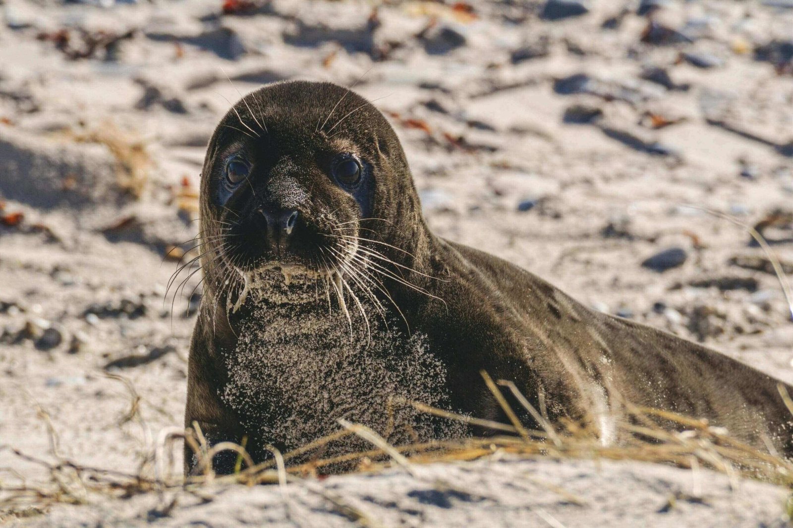 A marine mammal known for its sleek body, whiskers, and playful behavior, often seen on beaches.