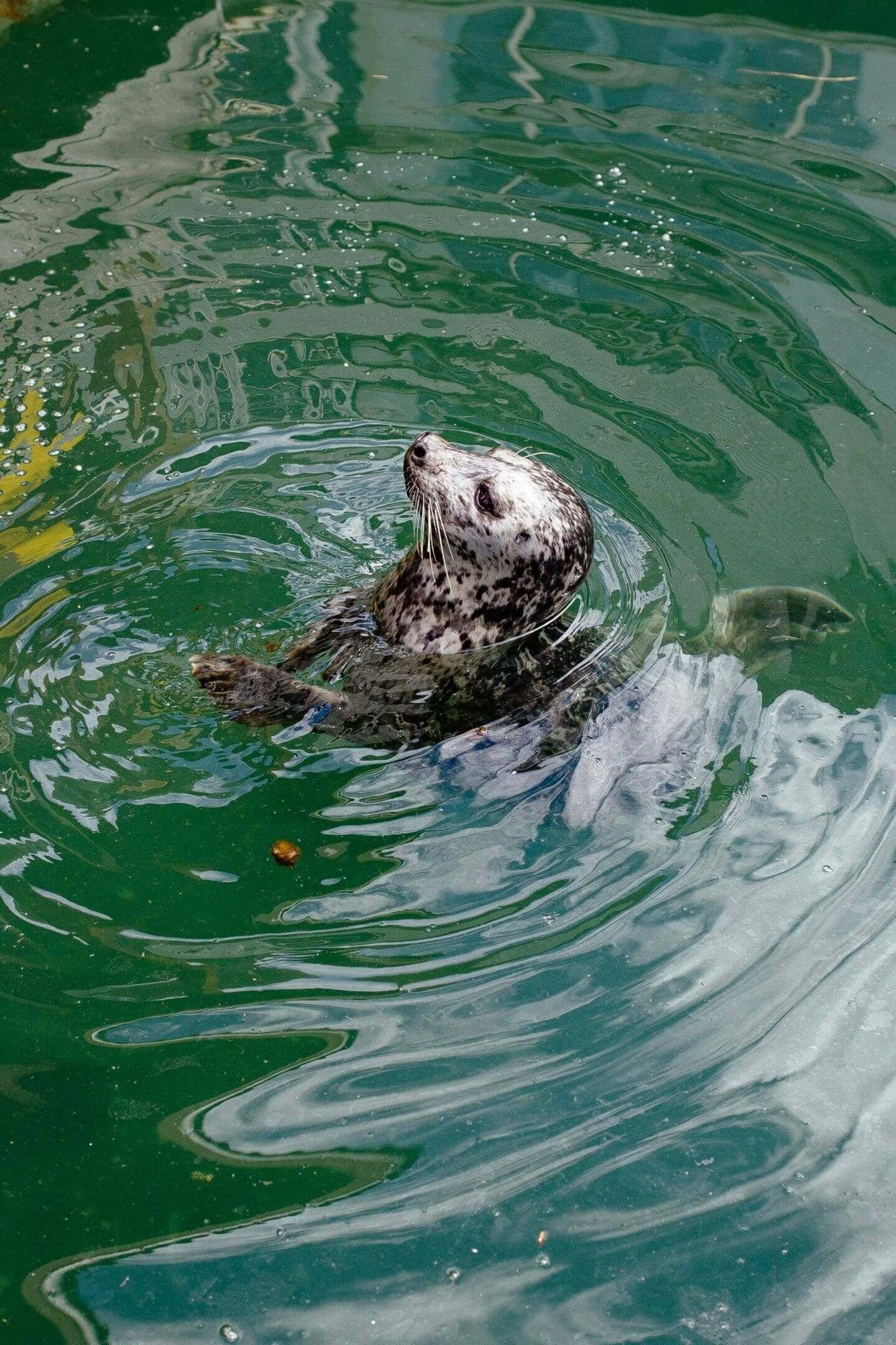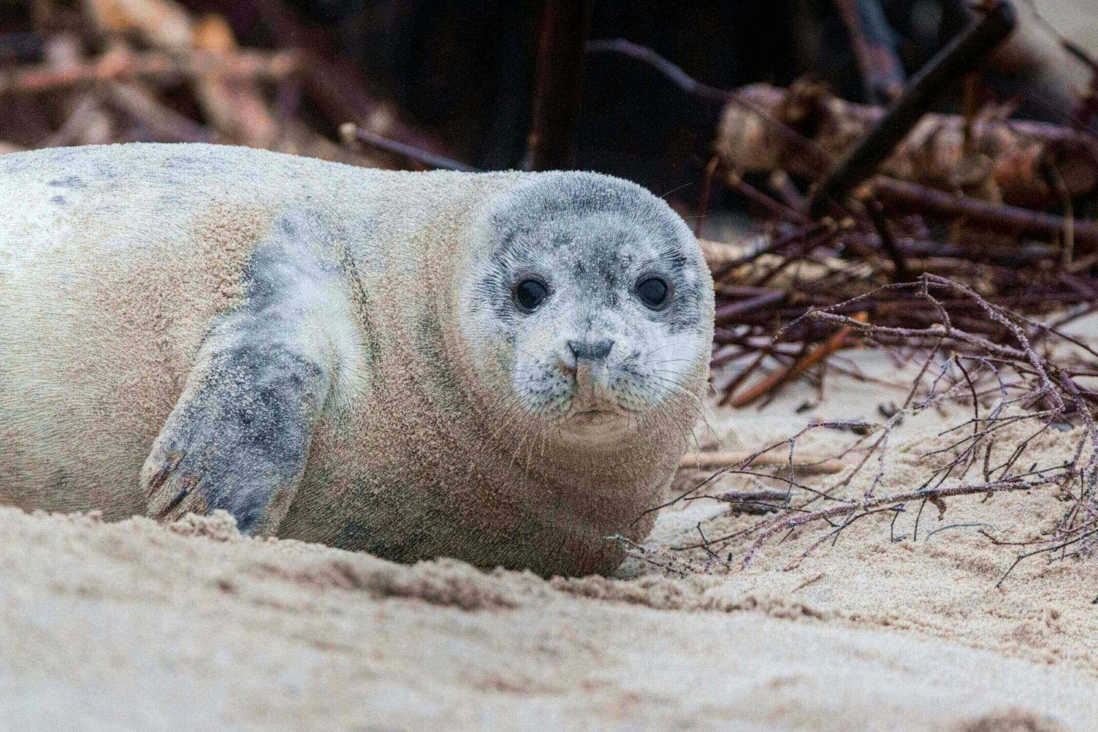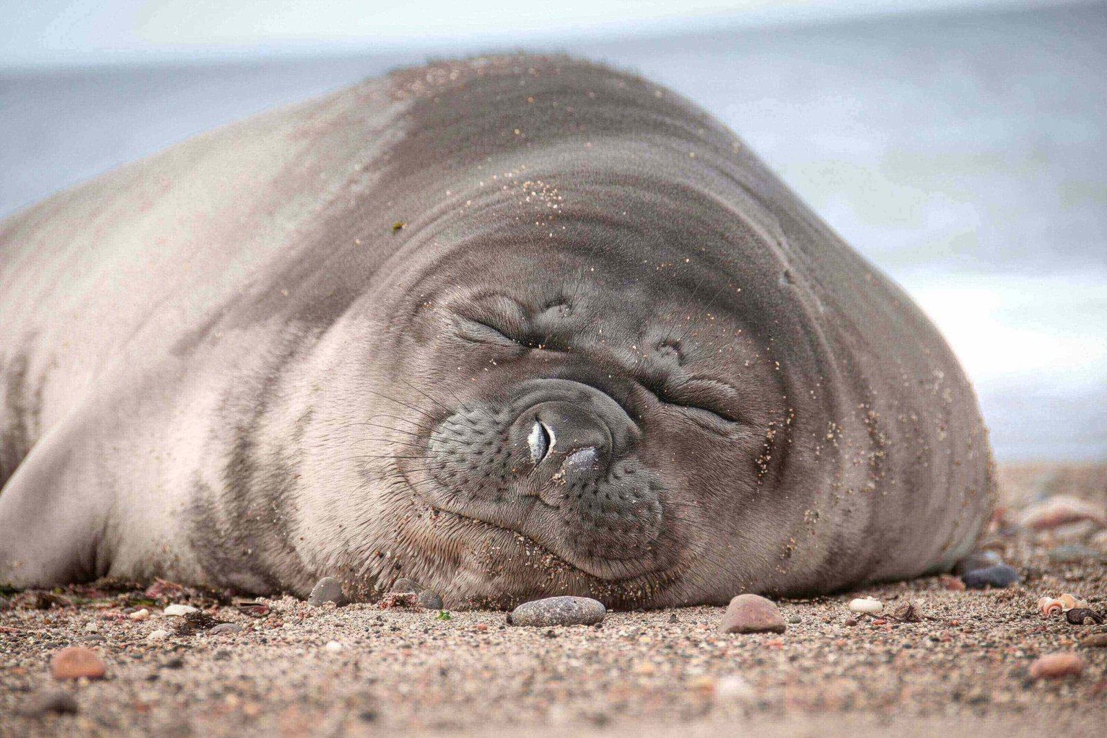 A marine mammal known for its sleek body, whiskers, and playful behavior, often seen on beaches.