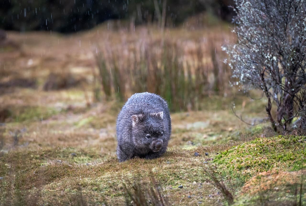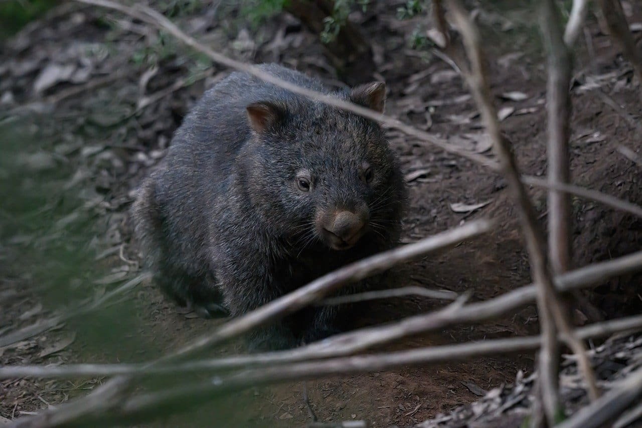 A burrowing marsupial from Australia with a stocky body and a backward-facing pouch.