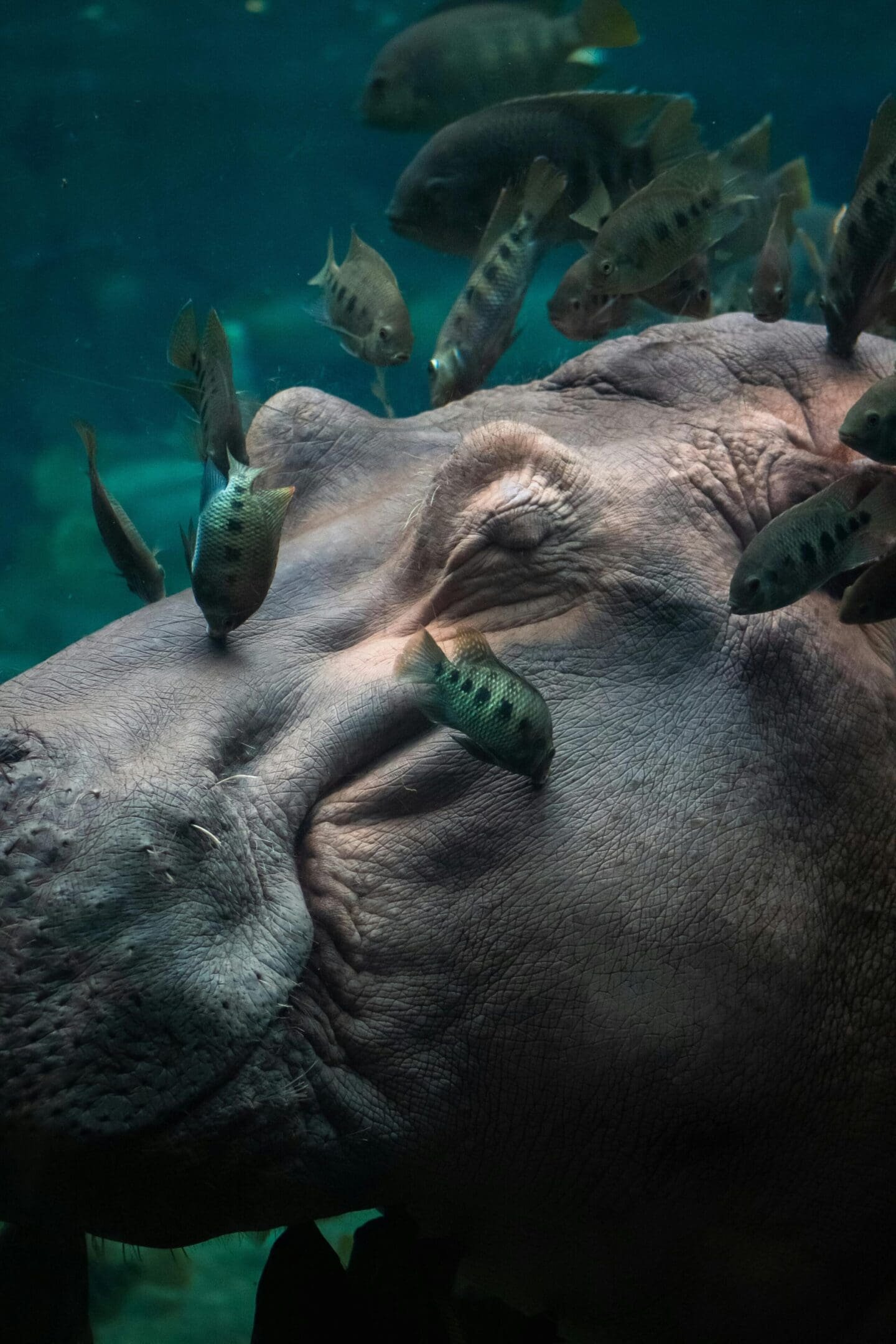 A massive, mostly herbivorous mammal that spends most of its time in water, known for its large mouth and tusks.